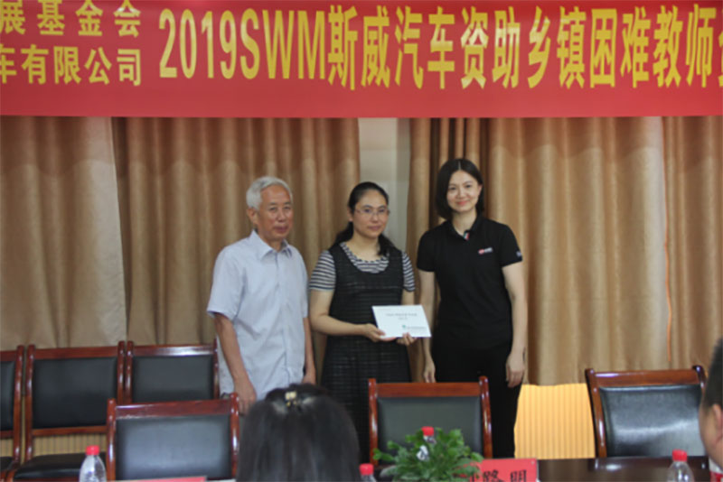 2019年9月10日,是第三十五個教師節,在全社會向老師致敬的同時,重慶市璧山區福祿小學校的老師收到了一份特殊的教師節禮物。在2019SWM斯威汽車資助鄉鎮困難教師資助金發放活動中,來自璧山區福祿小學校的受助教師代表伍夏紅老師,領取了5000元的“SWM斯威汽車鄉鎮教師專項教育扶持資金”。