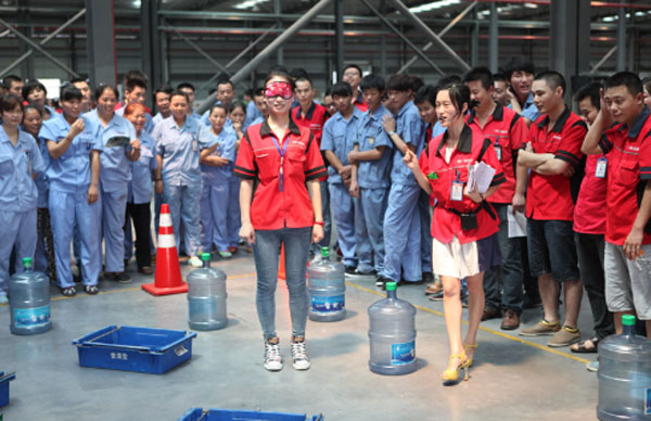 第二階段分為“上下同心”和“文化大比拼”兩個(gè)項(xiàng)目。上下同心由一名領(lǐng)導(dǎo)和一名下屬組隊(duì)參與,下屬在領(lǐng)導(dǎo)的指揮下,慢慢的向前移動,雖然過程中有許多干擾因素,大多隊(duì)伍都能通過領(lǐng)導(dǎo)合理的指揮和下屬有效的執(zhí)行,到達(dá)終點(diǎn),這就是領(lǐng)導(dǎo)與下屬完美配合的體現(xiàn)。