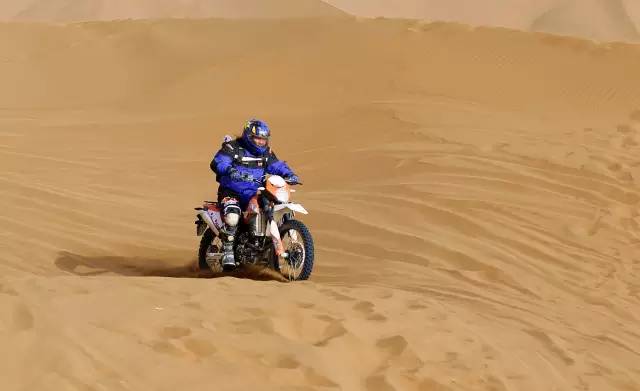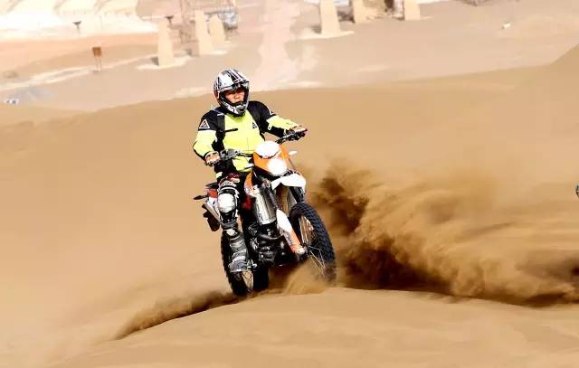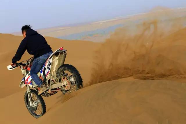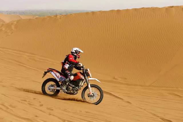 是的,在沙漠里根本辦法好好騎車,想要在沙漠里騎得快,要訣有兩點:別減速、看準路線,油門加大了后輪會瞬間陷下去,換擋慢了油門遲滯也會陷下去,減檔時發動機制動力起作用又會陷下去,還讓不讓人好好騎車了?