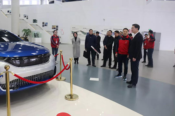 董事長向區(qū)委書記王志杰介紹汽車產(chǎn)品