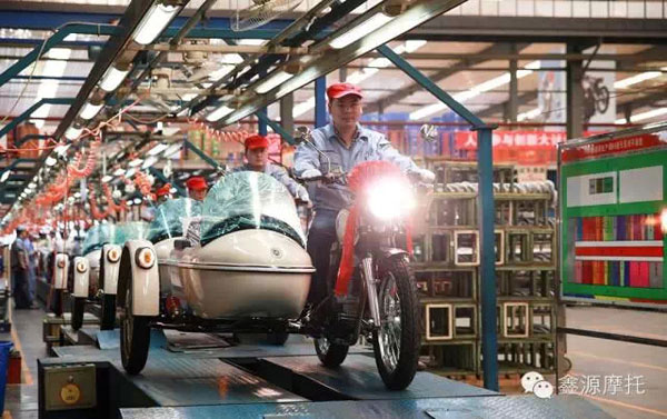 2015年3月30日,萬眾期待的鑫源復古邊三輪(挎子,XY400B)頭戴大紅花,在鑫源摩托生產車間生產三線隆重下線。鑫源摩托公司總經理鐘秉福先生、國內營銷部總經理余波等高層領導、研發(fā)團隊以及生產團隊出席了本次下線儀式。