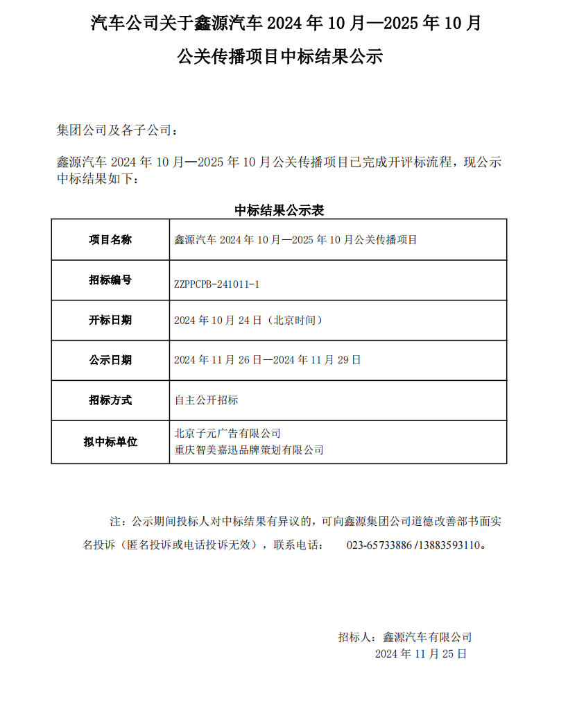 汽車公司制造物流中心關于涪陵總裝車間關重件掃碼綁定及合格證系統實現自動打印項目中標結果公示